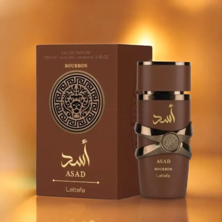Asad Bourbon by Lattafa features pink pepper, lavender, and mirabelle plum. The heart reveals cacao and nutmeg, resting on a base of vetiver, amber, and bourbon vanilla.