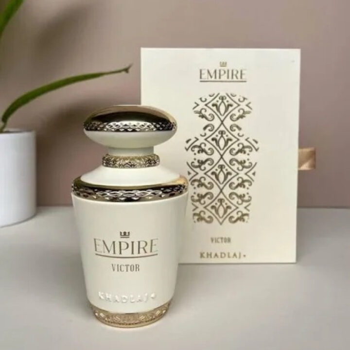 Empire Victor by Khadlaj opens with lemon and bergamot, transitioning to a heart of caramel and jasmine. The base features vanilla and musk for a triumphant gourmand finish.