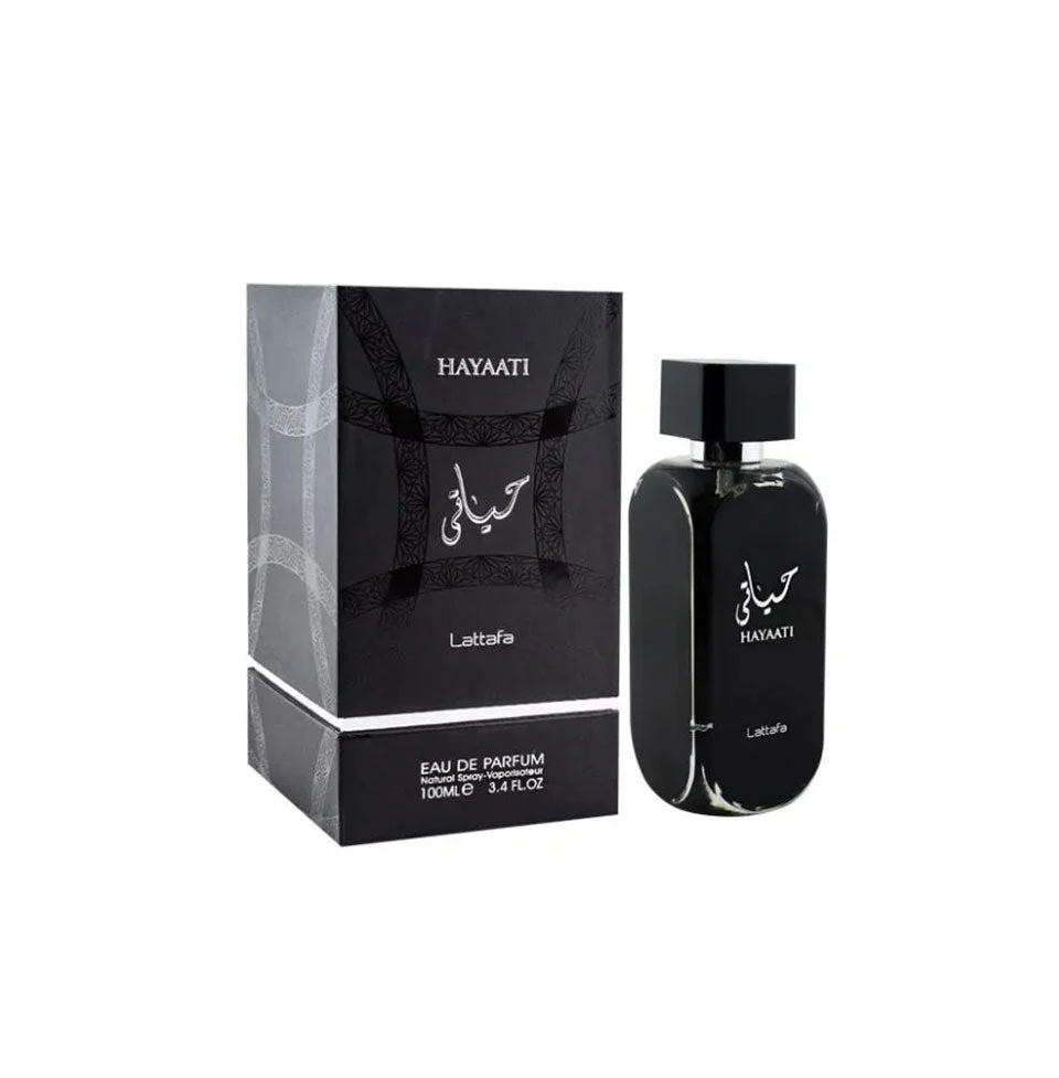 Hayaati Black Lattafa opens with bergamot and apple. The heart reveals cinnamon and woody notes, resting on a base of musk and vanilla.