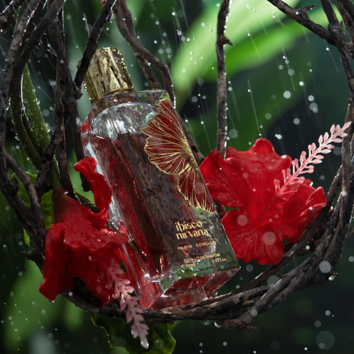 Ibisco Nirvana by Paris Corner is a unisex floral-gourmand fragrance opening with lime, mint, and blackcurrant. The heart reveals hibiscus, rose, geranium, and cinnamon, while the base settles into vanilla, leather, amber, and musk.